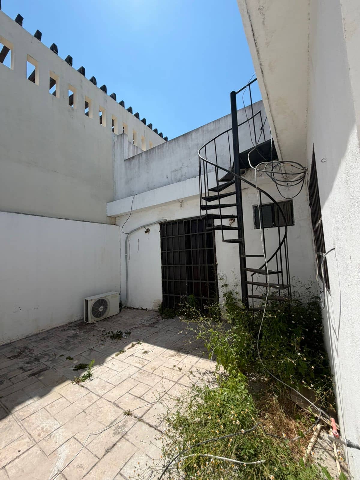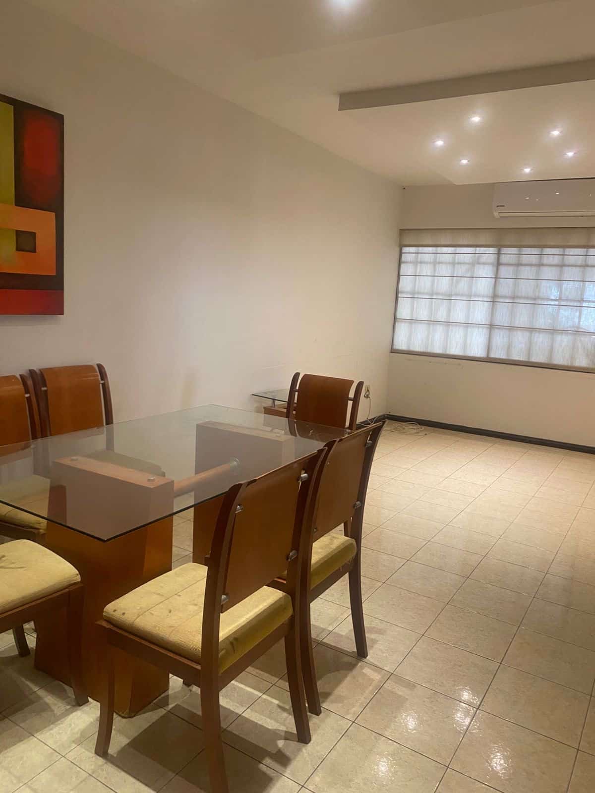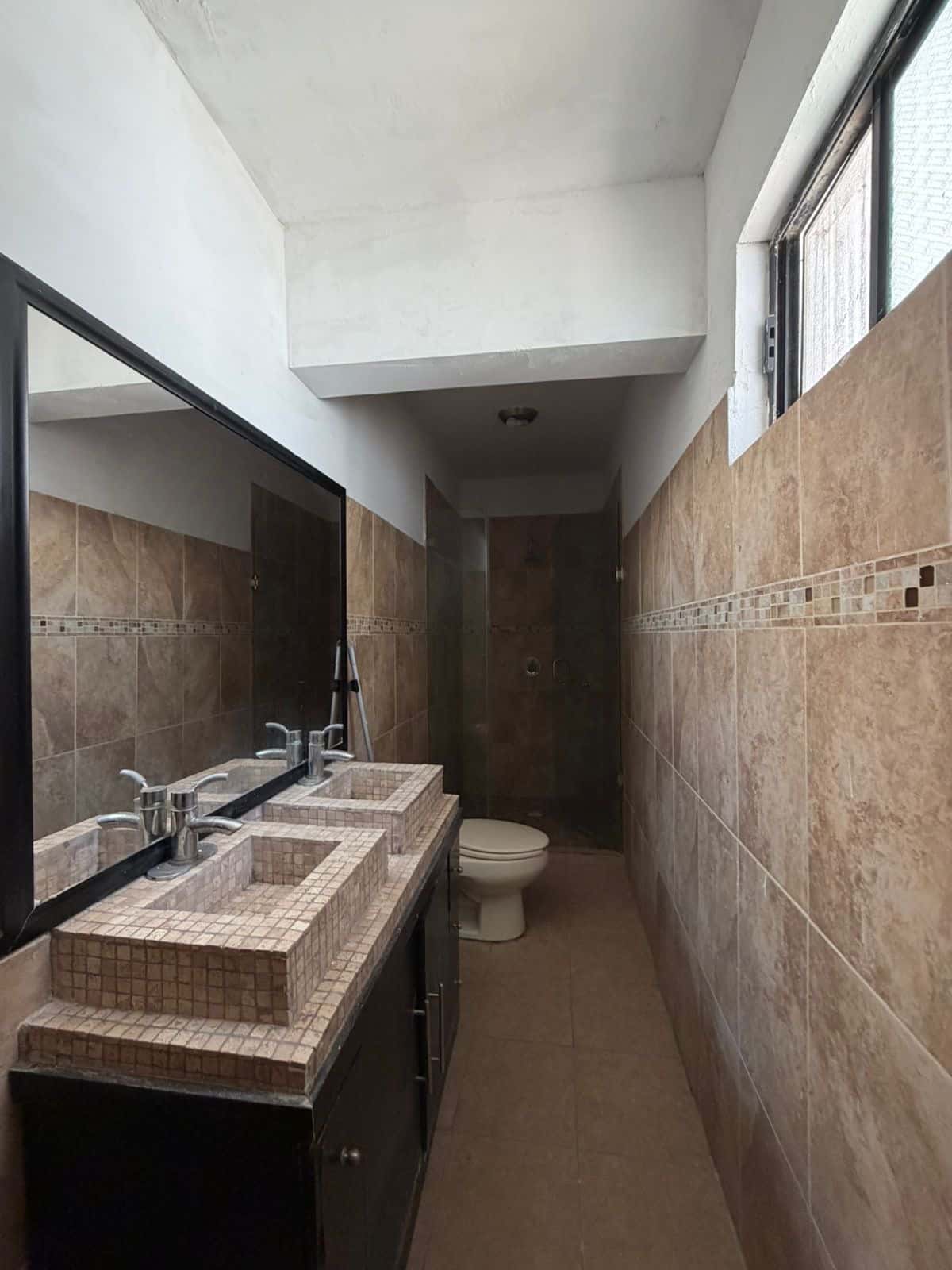 Planta alta, área social con minisplit y bar, dos baños, y lavabo para visitas, dos áreas de patio chico, cuarto de servicio con baño completo