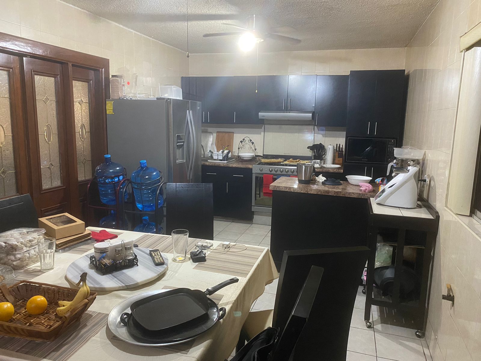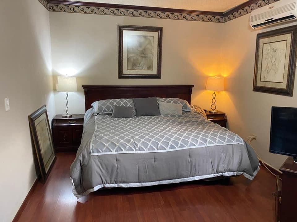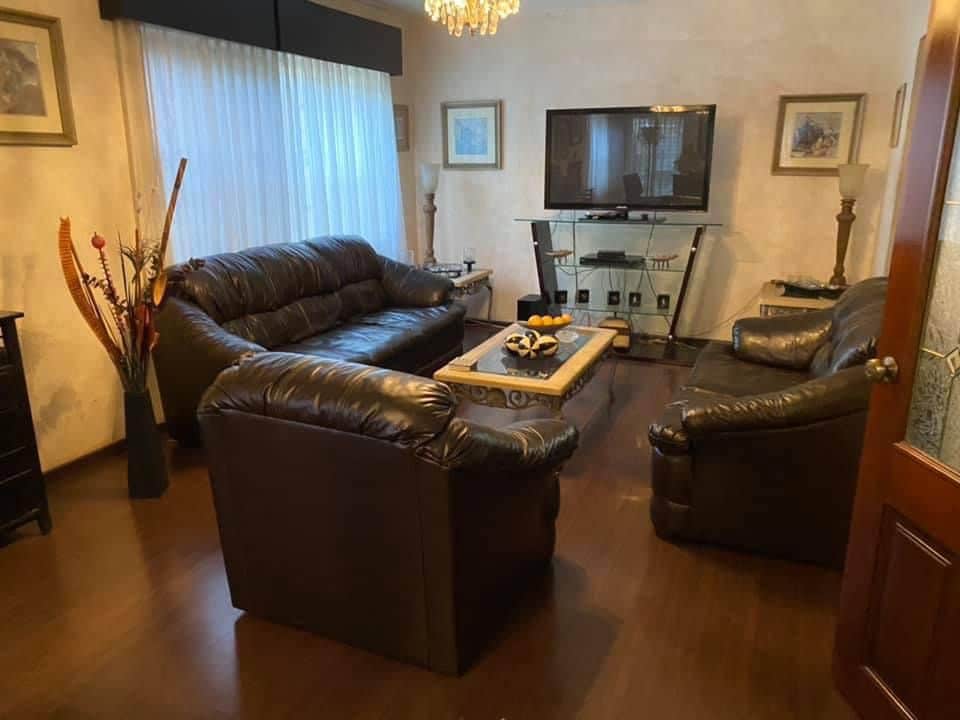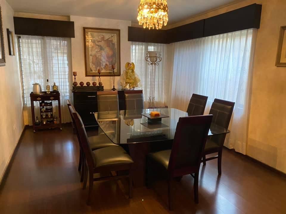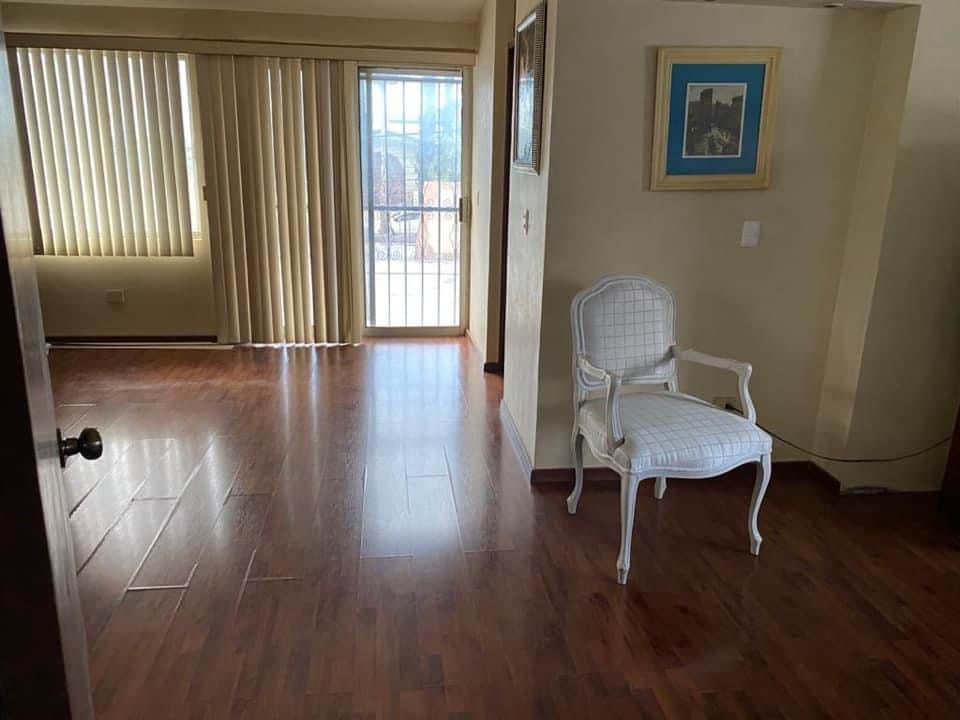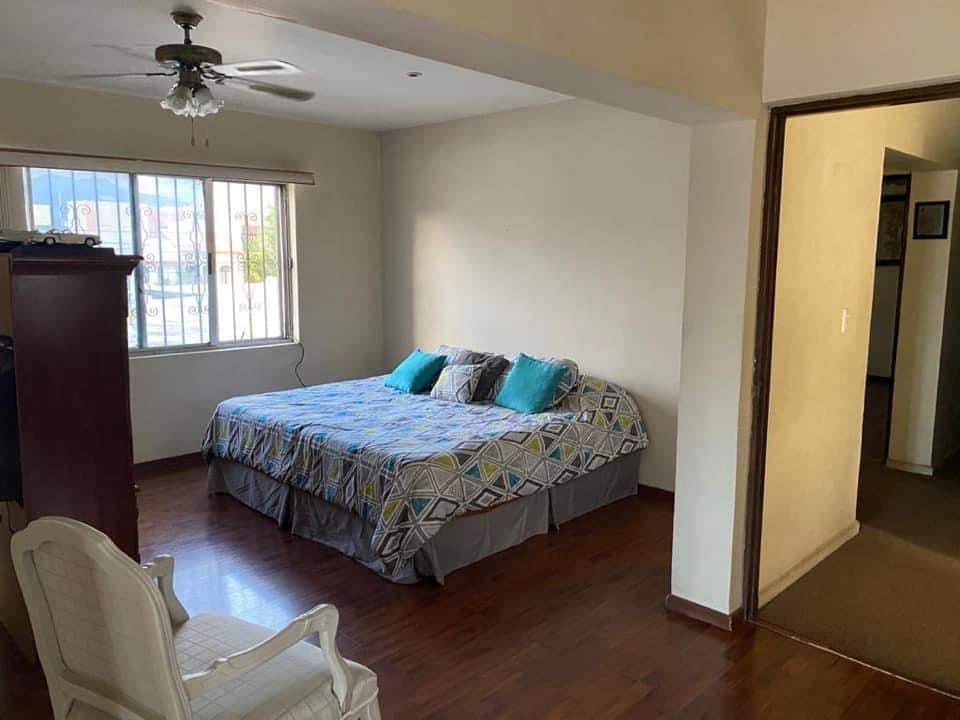 Con recibidor, sala comedor, un baño visitas, cocina integral con estufa y área antecomedor, cuarto de tv, cochera para 3 autos con portón eléctrico, cuarto de lavado, cuarto de servicio con baño, patio.