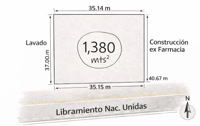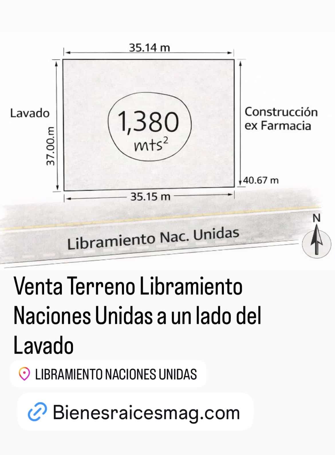 Vendo Terreno Comercial Sobre Libramiento Naciones Unidas, a un Lado del Lavado con 35 m. de frente al Libramiento x 40 m. de fondo TOTAL 1,380m2 en $6,500/ m2